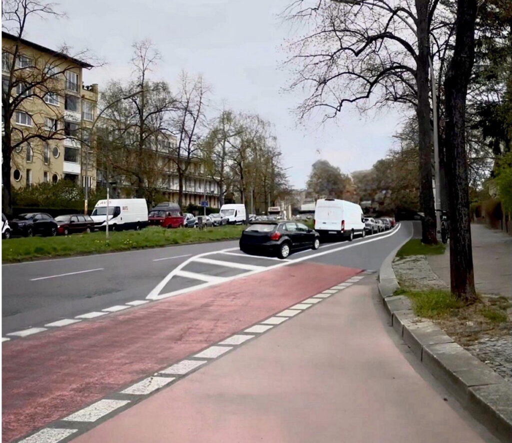 • Keine Einschränkungen: Die sechsspurige Straße (zwei Fahrspuren + Parkstreifen je Richtung) kann bei den Verkehrszahlen problemlos umverteilt werden. Das Parken ist für die PKW der Anwohnenden weiterhin möglich.