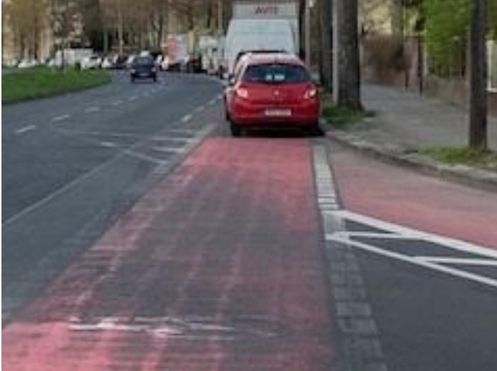 „In der Folge fahren viele Radfahrende in dem Bereich zwischen dem ruhenden Verkehr und dem zweiten Fahrstreifen, wodurch es einerseits zu einem engen Überholen durch Kfz kommt […] und andererseits besteht stets die Gefahr, dass Radfahrende durch unachtsam geöffnete Türen der parkenden Kfz gefährdet werden.“